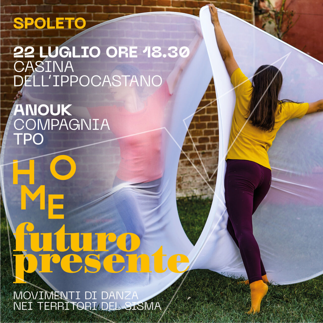 Dance Gallery torna, anche in questo 2022, nei territori colpiti dagli eventi sismici del 2016/17 e lo fa attraverso una serie di azioni e performance partecipative con il progetto Home Futuro Presente. Iniziativa ideata e promossa da Dance Gallery, associazione perugina che dal 1994 si occupa di arti performative, danza e linguaggi del corpo, per i Comuni di Norcia, Cascia, Arrone, Spoleto e Ferentillo in risposta all’avviso pubblico per il sostegno a progetti di spettacolo dal vivo nei comuni del ‘cratere del terremoto’ della Regione Umbria.