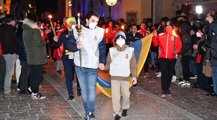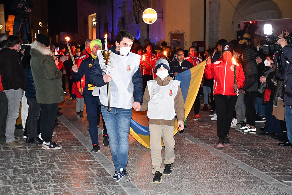 Eugenio, ragazzo ucraino residente a Norcia, e il suo piccolo cugino che lo ha raggiunto pochi giorni fa insieme alla mamma scappando dalla guerra: sono stati loro gli speciali tedofori che hanno attraversato, la sera del 21 marzo, il corso della cittadina umbra con la Fiaccola benedettina pro “Pace et Europa una” con la quale è stato acceso il tripode dinanzi alla statua di S. Benedetto.
