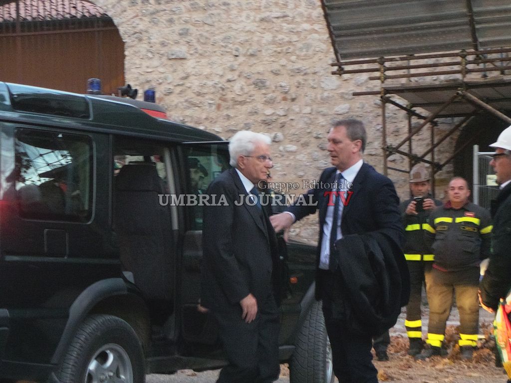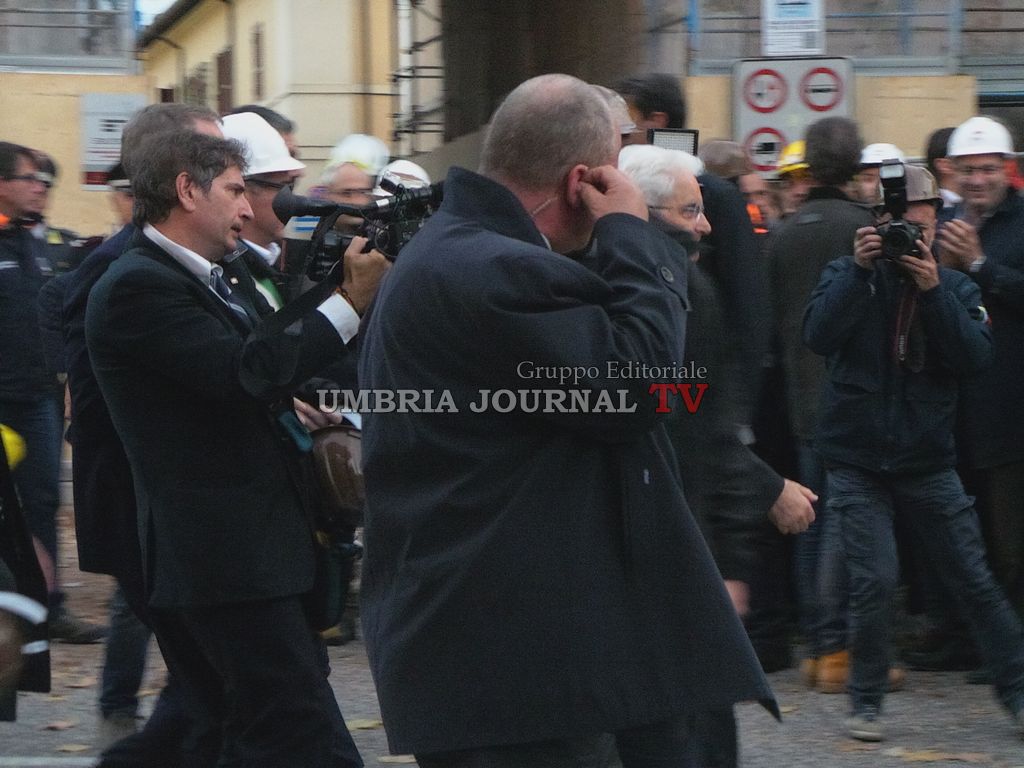 Al suo arrivo è stato accolto da un lungo applauso. Il presidente si è poi fermato parlare con i terremotati ascoltandoli e dando a ciascuno una sua parola di solidarietà. Enzo Bianconi a nome di tutti gli imprenditori gli ha poi consegnato una lettera. Mattarella prima di arrivare a Norcia ha visitato anche Camerino, un’altra città colpita dal terremoto. Presenti anche il commissario della ricostruzione, Vasco Errani, Fabrizio Curcio, capo Protezione Civile. Dopo è entrato nella zona rossa, accompagnato dai vigili del fuoco e dalle autorità. «Prometto impegno e lavoro fino alla fine, Norcia tornerà come prima, sarà lunga, ma ci vorrà tempo”. Queste le sue ultime parole prima di partire per il Trasimeno dove ha incontrato gli sfollati ospitati nelle strutture alberghiere.