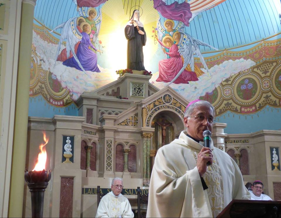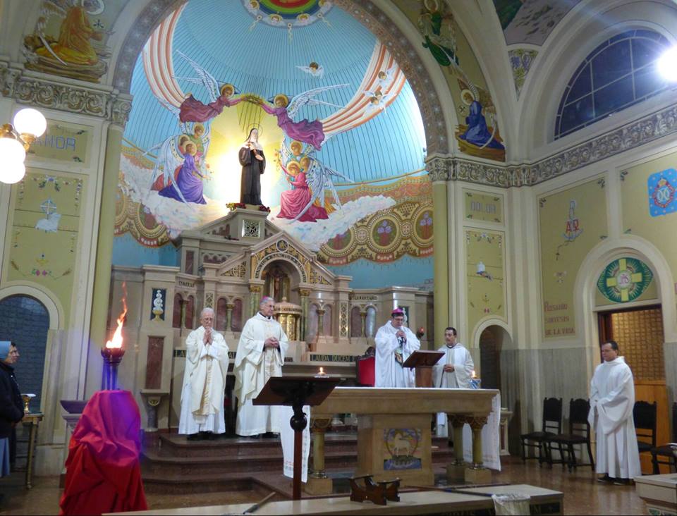 La delegazione di Cascia, guidata dal sindaco Gino Emili, dall’Arcivescovo Renato Boccardo e da Padre Mario De Santis, ha quindi fatto ingresso nella chiesa dedicata a Rita, dove l’occhio è rapito dai colori e dai bellissimi affreschi e vetri dove sono riprodotti episodi centrali della vita della santa, mentre lo spirito è rinfrancato dalla presenza spirituale di Rita, la cui statua accoglie e abbraccia tutti i fedeli. Dopo la visita al nuovo asilo della comunità, alle 19, ha avuto inizio la santa messa, celebrata da Monsignor Juan Carlos Ares, Vescovo ausiliare di Buenos Aires, affiancato da Monsignor Boccardo e Padre Mario. Presente tra le istituzioni, anche il Console Italiano a Buenos Aires, Riccardo Smimmo. Protagonista la Fiaccola della Pace, che ha aperto la messa, illuminando la strada che conduce alla fraternità, alla pace e alla misericordia.