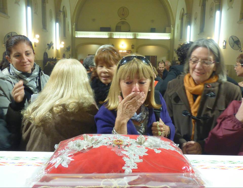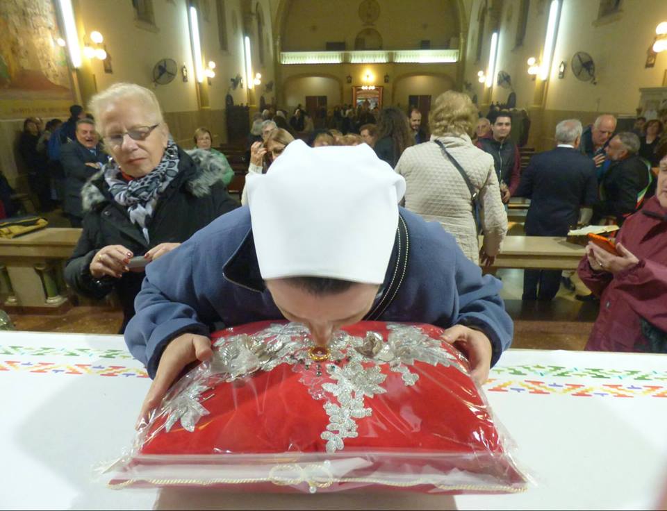 Il sindaco ha ringraziato tutti, parlando anche della bella relazione stretta con il “Centro Umbro di Buenos Aires” e concludendo ha detto: “Aspettiamo la Fiaccola a Cascia insieme alla tante persone buone che ci hanno accolto e siamo sicuri che i casciani sapranno ricambiare affetto e fraternità”. Onorato di accompagnare la delegazione, l’Arcivescovo Boccardo ha dipinto Santa Rita come un esempio per tutti e ha ricordato le parole che proprio il Pontefice gli ha detto, in merito a questa visita speciale nella sua terra: “Porta a tutti i miei saluti e la mia benedizione e pregate per me”. La commozione è poi esplosa con la processione di fedeli che si sono avvicinati all’altare per toccare e baciare la reliquia, un dono di fede e di amore. La cerimonia di gemellaggio si è conclusa con uno scambio di doni tra le due comunità.