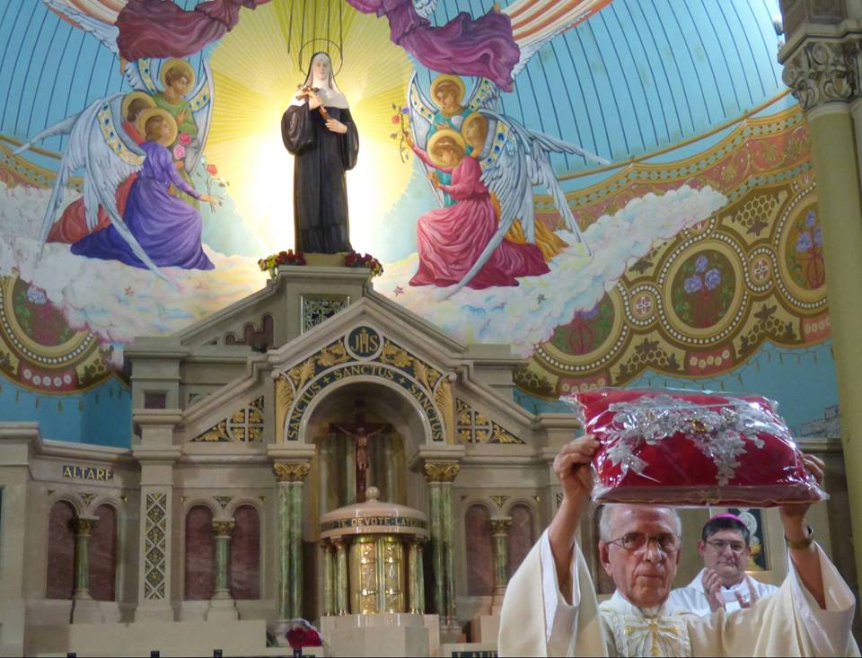 “Santa Rita è tra noi”. Con questa frase, ripetuta in coro dai numerosi fedeli della comunità del Santuario di Santa Rita a Buenos Aires, è terminata tra fragorosi applausi la toccante e sentita cerimonia di accensione della “Fiaccola della Pace”, simbolo della fede ardente in Rita e dei festeggiamenti ritiani, che quest’anno vede unirsi in comunione e fratellanza il colle della speranza con la terra di Papa Francesco. Estremamente emozionante, oltre al momento dell’accensione del fuoco sacro, anche la cerimonia di donazione di una reliquia ex ossibus della Santa degli Impossibili, consegnata da Padre Mario De Santis Rettore del Santuario casciano, a nome del Monastero. La giornata di lunedì 25 ha così suggellato il 58 esimo Gemellaggio di Fede e Pace tra le due comunità, che si sono ritrovate nel Santuario dei Padri Oblati di Maria Vergine, accolti da Padre Luis Costantino.