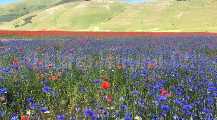 Alcuni imprenditori turistici della zona, stanno riprendendo piano piano a fare accoglienza, si cerca di trovare spazi adeguati per i ristoranti danneggiati, ad oggi ci sono anche dei container con prodotti turistici, ma Castelluccio merita e vuole di più. I papaveri, i narcisi, le genziane, i tulipani, i fiordalisi e le piante di lenticchie che in questi giorni dipingono i campi di mille colori, dal rosso, al giallo all’azzurro mi accompagnano verso la strada del ritorno, è trascorso un po’ di tempo, ora in tanti in auto, in camper, con i pullman, con le moto e con alcune bici stanno salendo, per godere di tanta bellezza. Spero che questa festa della natura possa riportare a questo e agli altri luoghi colpiti dal terremoto, in tempi brevi una vera e seria ricostruzione e doni serenità e tranquillità a chi vi abita.