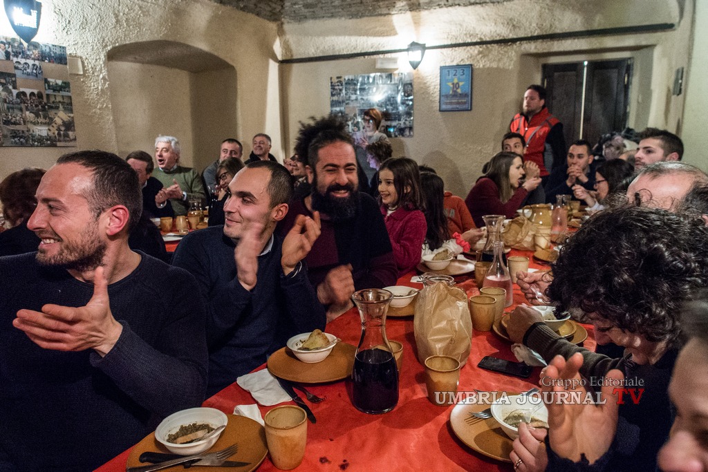 La comunità di Castelluccio di Norcia alla cena della “zampetta” a Trevi