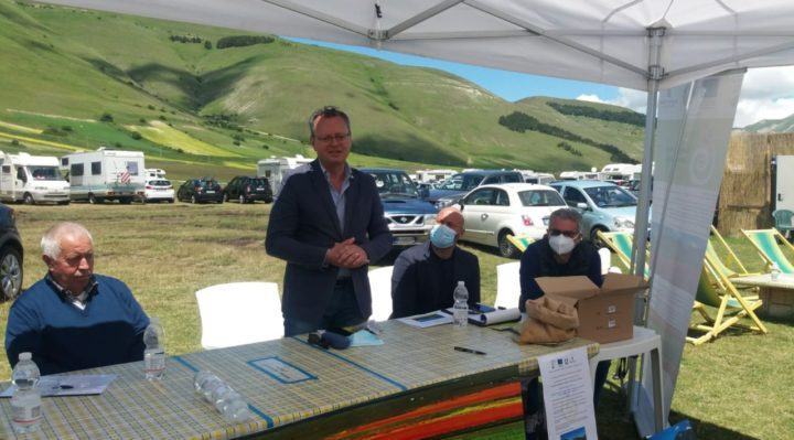 “Siamo molto contenti oggi di celebrare questo evento – ha concluso Nello Perla – e abbiamo pensato che sarebbe stato bello fare una festa di campagna per l’occasione, la Festa della fioritura di Castelluccio. Chiediamo a chi viene a vedere la fioritura di rispettarla: è una meraviglia che continua grazie al lavoro degli agricoltori, non calpestare le coltivazioni di lenticchia e il lavoro degli agricoltori per fotografare i fiori è un segno di cortesia di cui ringraziamo”.