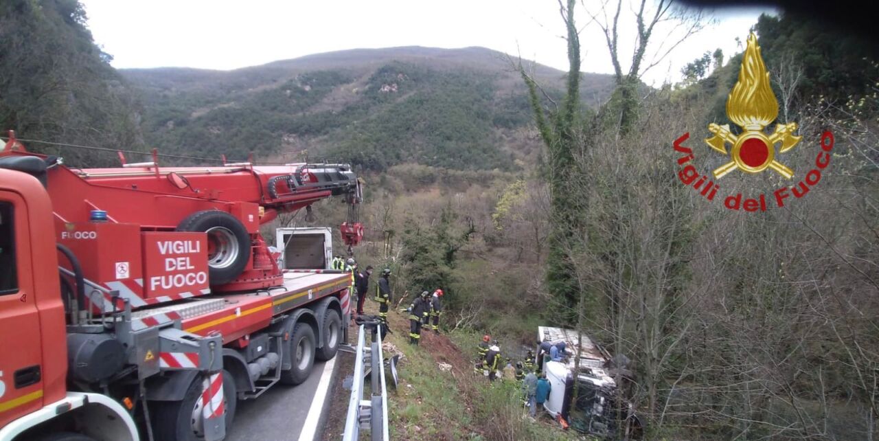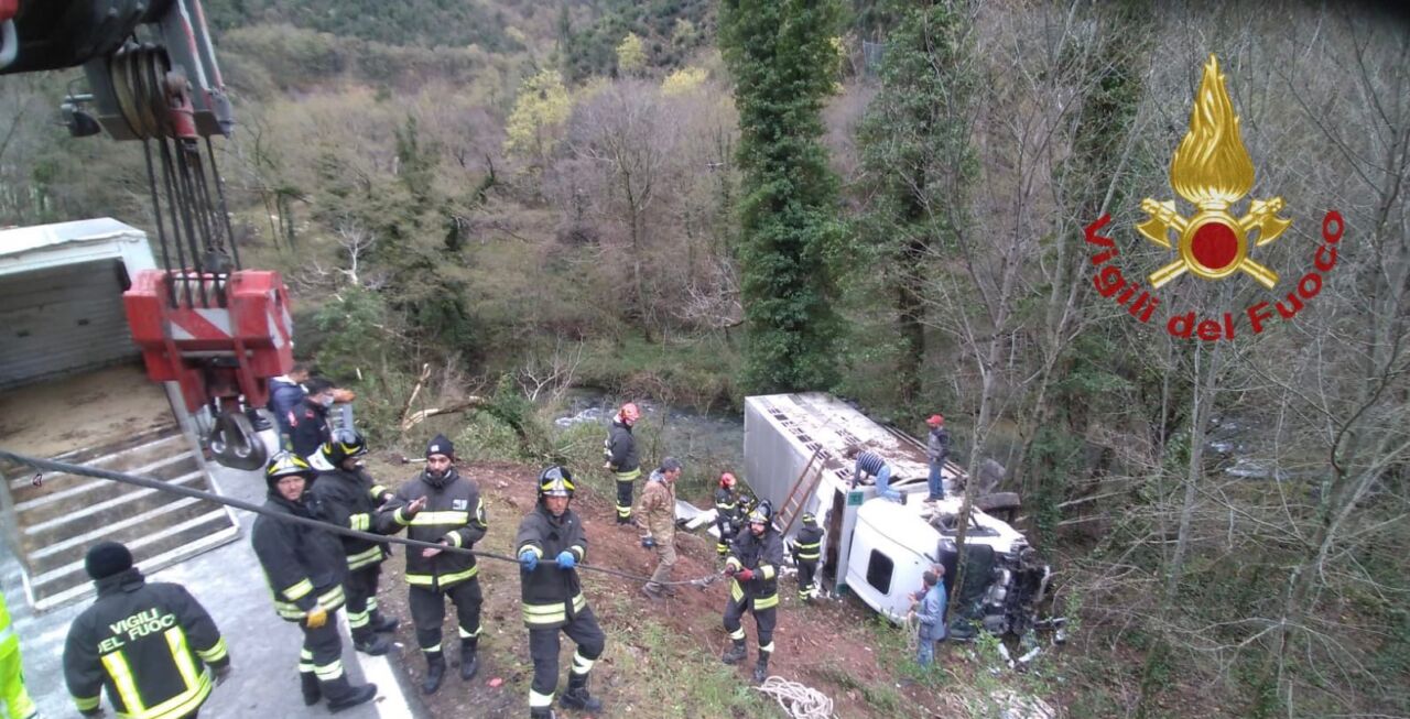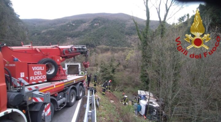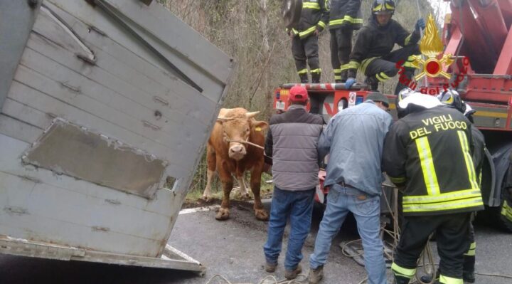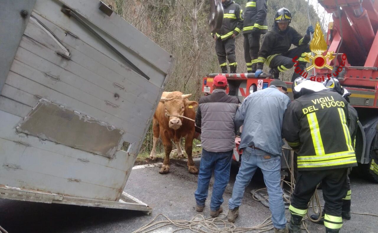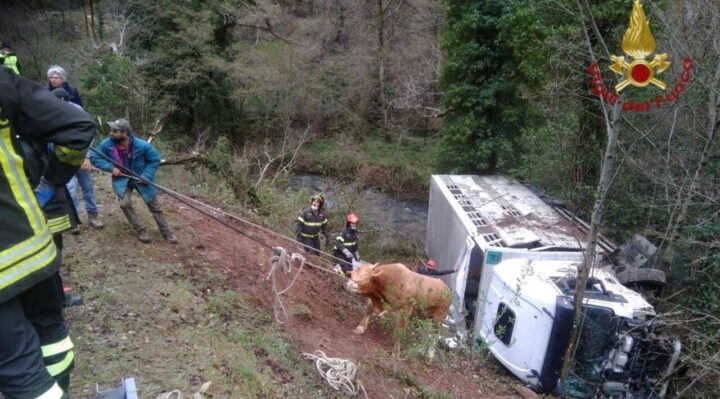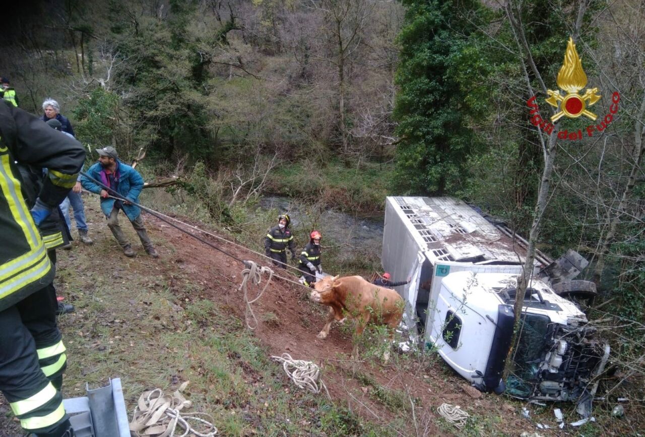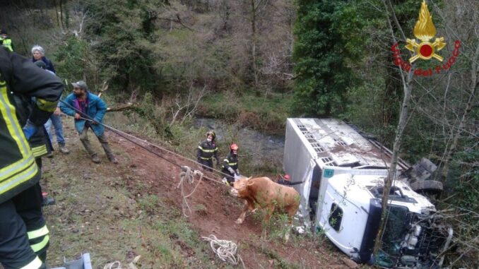 Gli animali sono stati tutti recuperati vivi e l’autista del camion è stato trasportato dai sanitari del 118 per accertamenti. Incidente stradale sulla strada statale 685 a Vallo di Nera. Si è verificato alle prime luce dell’alba. Un camion proveniente da Norcia, che trasportava vitelli, è finito in una scarpata. Sul posto sono intervenute due squadre VVF provenienti da Perugia con un Autogru e la squadra del distaccamento di Spoleto, oltre a personale ANAS, ASL, Carabinieri e 118.