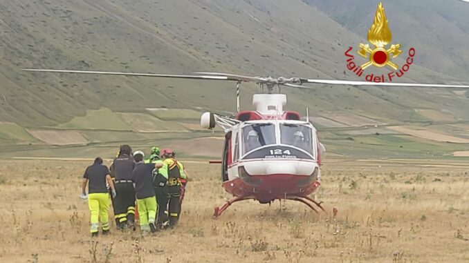 Un ciclista di 59 anni, caduto su un sentiero a Norcia, è stato soccorso dai sanitari del 118 e dai vigili del fuoco. Sul posto anche carabinieri e gli operatori del soccorso alpino che hanno aiutato la squadra dei vigili del fuoco a portare il ferito fino alla piana di Castelluccio, elitrasportato poi in Ospedale a Perugia dall’elicottero VVF arrivato da Arezzo. Il ferito ha riportato diversi traumi anche alla testa e classificato in codice rosso.