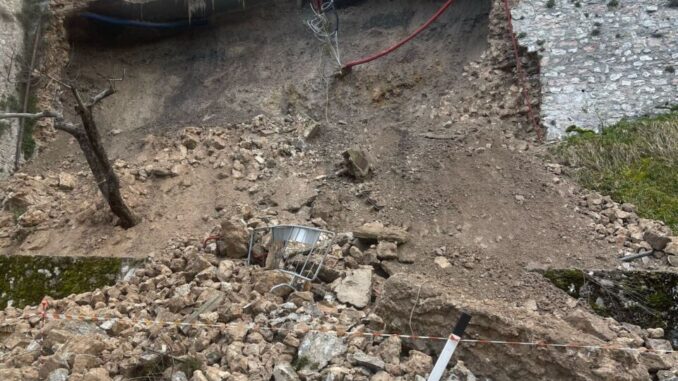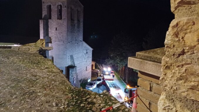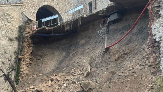 Un tratto delle mura storiche di Vallo di Nera, in Valnerina, è crollato nel pomeriggio di giovedì 13 marzo nell’area denominata “Portella”. Il cedimento ha interessato una porzione di alcuni metri. Nessuna persona è rimasta ferita, poiché al momento del crollo non vi erano né pedoni né veicoli in transito. In via precauzionale, due nuclei familiari, di cui uno con minori, sono stati evacuati e hanno trascorso la notte presso parenti.