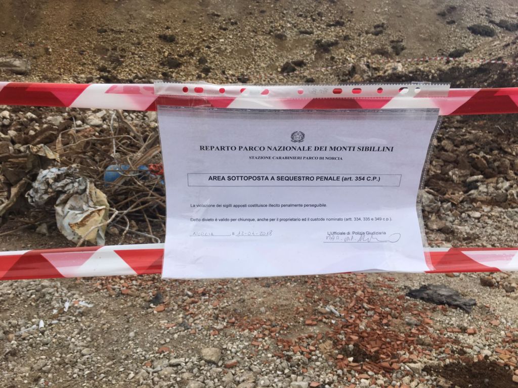 NORCIA – E’ stata sequestrata nel parco dei Sibillini, a Castelluccio di Norcia un’area dove i carabinieri dell’Ente Parco hanno individuato uno “smaltimento non autorizzato di rifiuti”. L’area è di circa 200 metri quadrati, sottostante il cantiere del Deltaplano, la struttura che ospiterà la delocalizzazione dei ristoranti di Castelluccio spazzati via dal sisma. Sono stati gli stessi cittadini del piccolo borgo, già messo a dura prova dal sisma e dalle lungaggini della burocrazia, ad accorgersi della discarica del tutto irregolare.