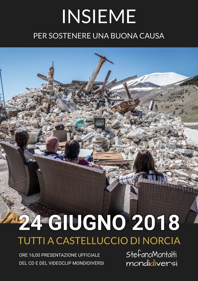 Domenica 24 Giugno 2018 alle ore 16, Stefano Montalti e la sua band saranno a Castelluccio per presentare il videoclip di Mondidiversi (Regia di Thomas Montalti) e per presentare ufficialmente il nuovo Cd con un live in chiave acustica. Parte del ricavato delle vendite del CD andrà all’Associazione “Per la Vita di Castelluccio di Norcia ONLUS” per finanziare progetti per la rinascita di Castelluccio e dei suoi abitanti.