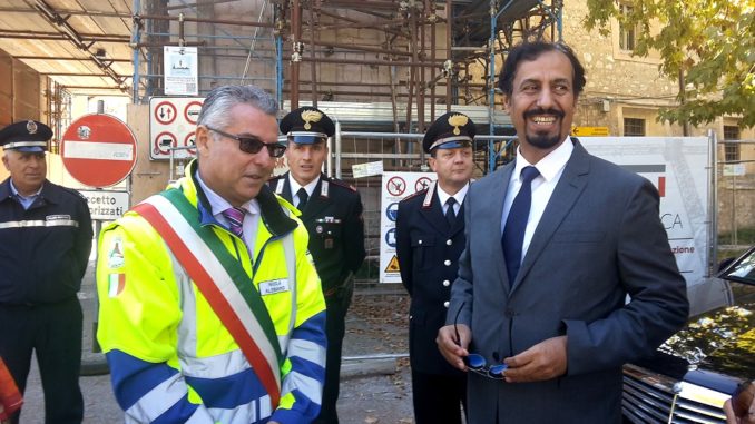 NORCIA – Visita dell’ Ambasciatore del Kuwait Sheikh Ali Khaled Al Jaber Al Sabah a Norcia che ha voluto così manifestare la vicinanza e la solidarietà del popolo kuwaitiano alla città colpita dal sisma.