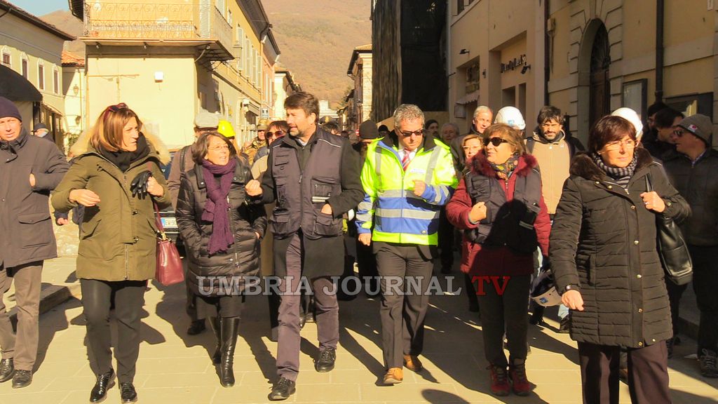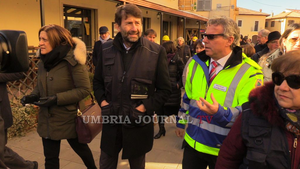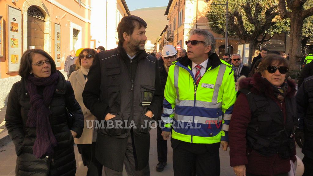 Dario Franceschini, il ministro Beni Culturali, visita Norcia e il centro storico NORCIA – Dario Franceschini, il ministro dei Beni culturali, oggi ha visitato Norcia. Il Ministro appena arrivato si è subito recato in piazza San Benedetto per vedere il cantiere della Basilica, messa in sicurezza con una “gabbia” di tubi innocenti. Il terremoto del 30 ottobre 2016 l’ha fatta interamente crollare ad eccezione della facciata. Il ministro Franceschini è arrivato a Porta Romana, il primo dei sette ingressi delle mura antiche della città ad essere riaperto, il 22 dicembre.