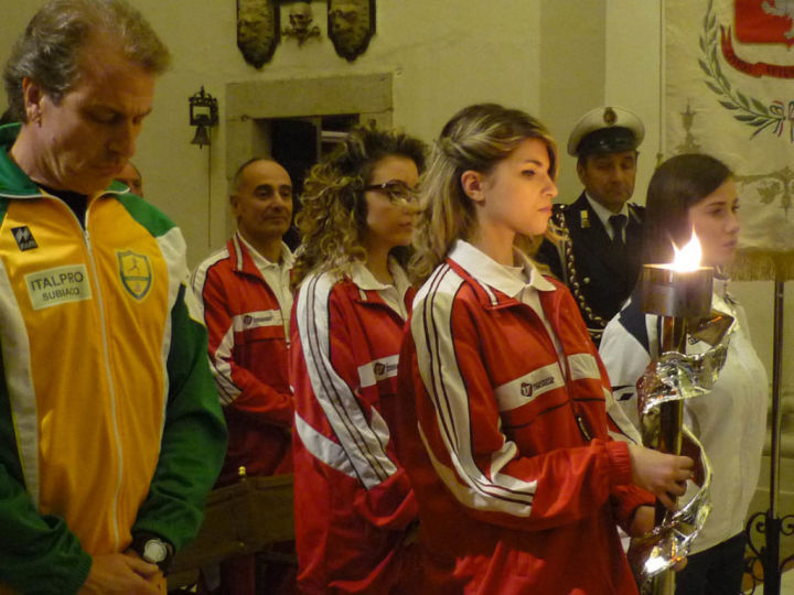 NORCIA – Ieri pomeriggio, in concomitanza alla chiusura del primo week-end di Nero Norcia 2015, che ha visto giungere nella città di San Benedetto migliaia di visitatori, l’accensione della Fiaccola “pro Pace et Europa Una” presso la basilica dedicata al Santo Patrono ha ufficialmente aperto le danze alle Celebrazioni Benedettine, che avranno il loro culmine solenne il 21 marzo. Alla celebrazione eucaristica, presieduta dal Vicario dell’Arcidiocesi di Spoleto-Norcia Luigi Piccioli e dal priore del Monastero “Maria Sedes Sapientiae” di Norcia Cassian Folsom, hanno preso parte i sindaci di Norcia, Cassino e Subiaco, rispettivamente Nicola Alemanno, Giuseppe Golini Petrarcone e Francesco Pelliccia, e altre autorità civili e militari, cui si sono aggiunti, sempre in rappresentanza delle tre municipalità benedettine, gli atleti tedofori al seguito della Fiaccola Benedettina. Come ogni anno, la Fiaccola Benedettina partirà alla volta di una capitale europea per diffondere i valori benedettini sui quali sono state impiantate la cultura e la civiltà del nostro continente;.