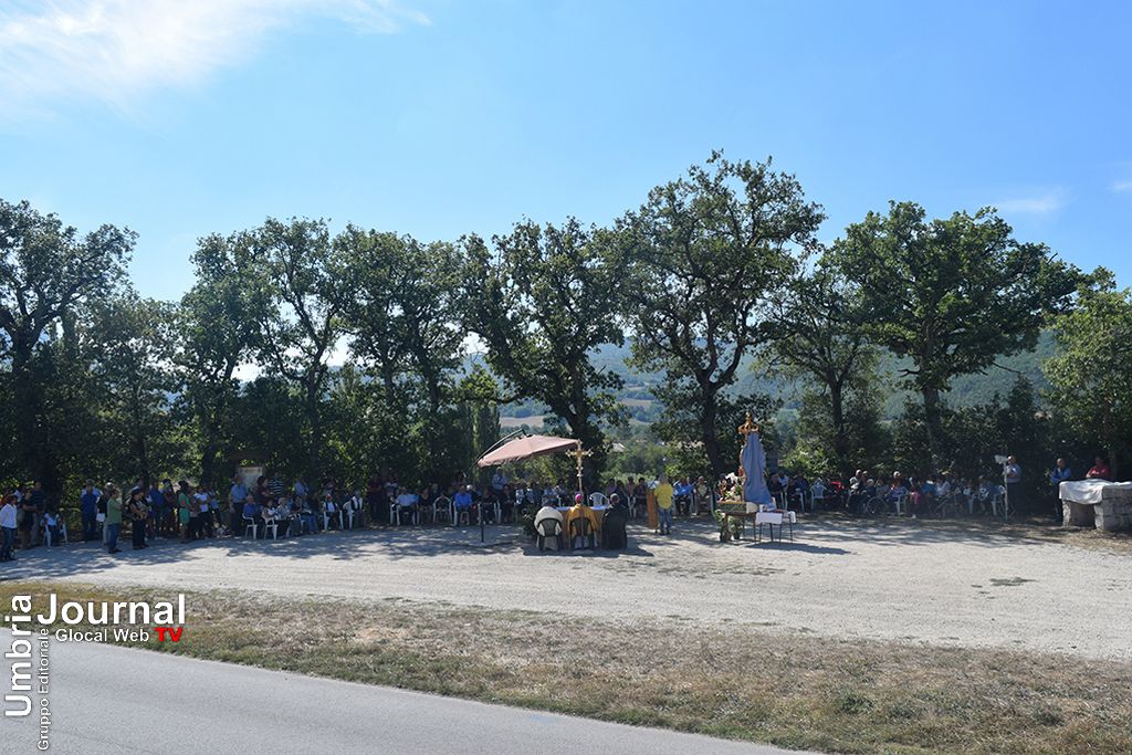 Ma Gesù ci precede in questo sentiero, ci apre la strada, è con noi, non ci lascia soli. È vero – ha proseguito – in questa vallata non abbiamo più chiese agibili (come del resto a Norcia, ndr), ma la vita cristiana prosegue perché il Signore abita nelle nostre vite prima ancora che nei muri di un edificio. Madonna della Croce venerata qui a Campi – ha detto al termine – prenditi cura dei tuoi figli terremotati e per ottieni le benedizioni di tuo figlio Gesù». Al termine della Messa mons. Boccardo ha pranzato nello spazio polivalente della pro-loco con le persone che dalla notte della prima scossa vivono lì (una trentina) o perché la casa è inagibile, o perché la paura ha avuto la meglio.