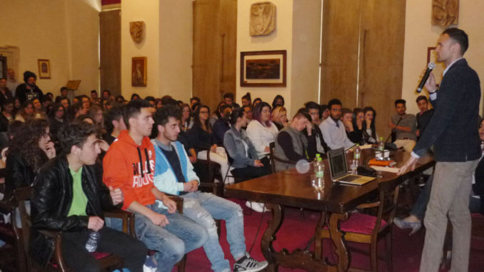 Norcia, presso la sede comunale, con il campione europeo e italiano di pallavolo Giacomo Sintini, autore del libro “Forza e coraggio”. L’iniziativa, promossa dall’assessorato alla cultura del Comune di Norcia, in collaborazione con l’omnicomprensivo “De Gasperi-Battaglia”, ha avuto l’obiettivo di creare un momento di incontro con un grande campione della pallavolo, ma soprattutto un momento di confronto e di ascolto con un uomo, una persona normale, che ha vinto una grande battaglia durante il suo percorso sportivo. E così è stato.