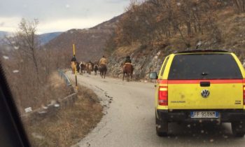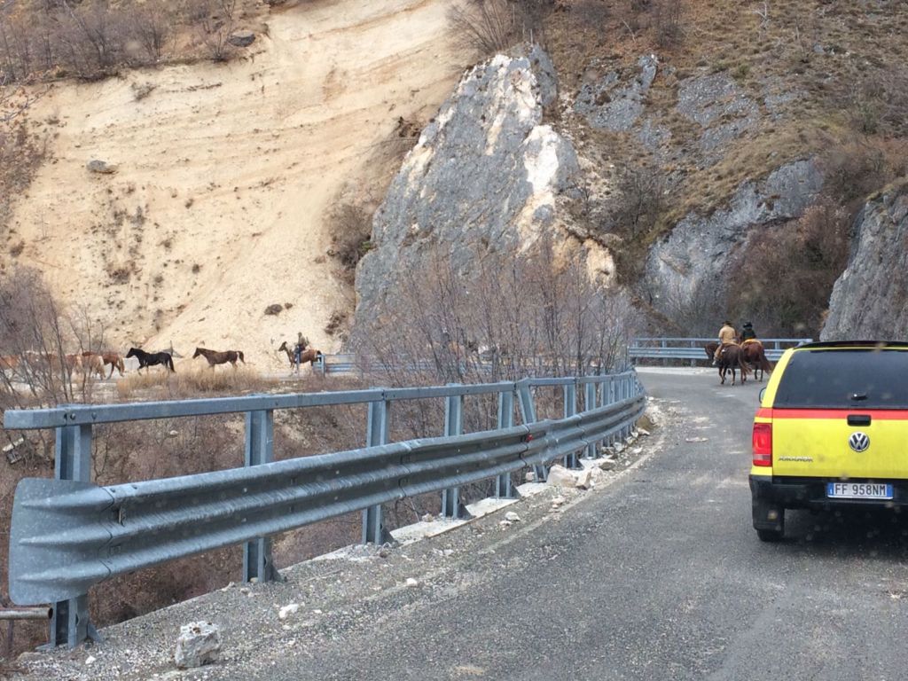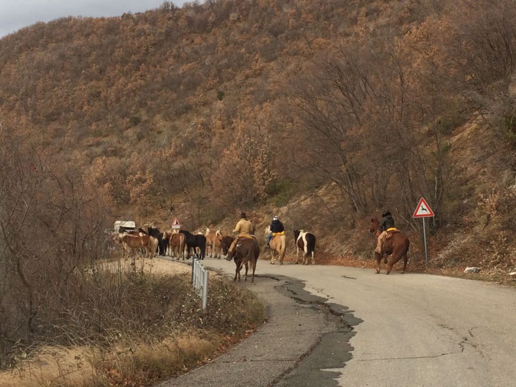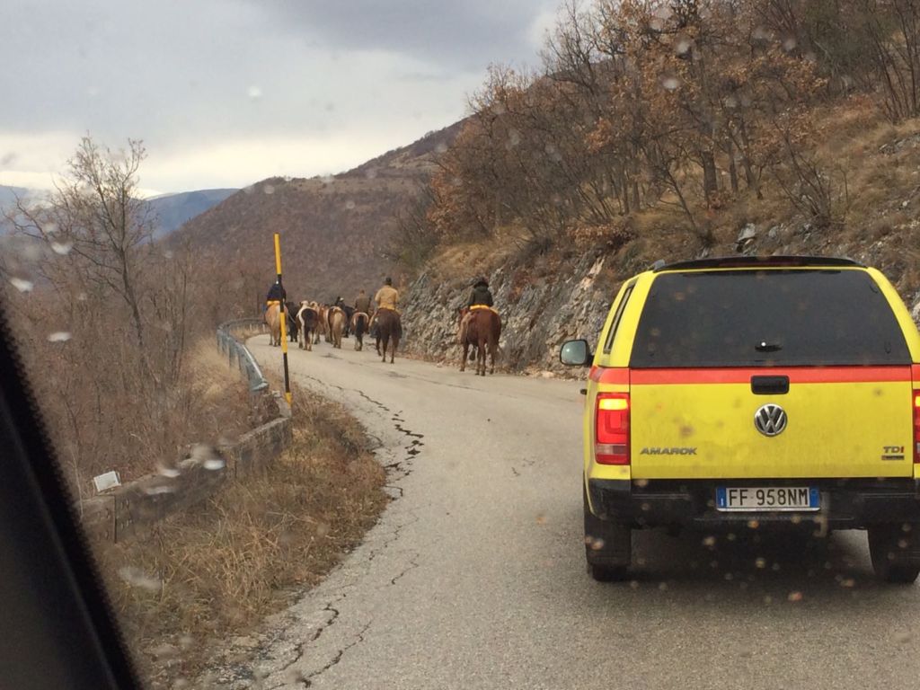 Natalia Estrada alla transumanza di Castelluccio di Norcia NORCIA – La transumanza dei cavalli bradi dell’altopiano di Castelluccio a Norcia (Perugia) ieri c’è stata, come previsto e come accade ogni anno alla vigilia dell’inverno. Qualche ora di ritardo per motivi burocratici, proprio per ottenere il permesso di transito nella strada provinciale semi-distrutta dal terremoto. Tratto molto pericoloso per le frane e le rocce in bilico, ma almeno in qualche modo percorribile.