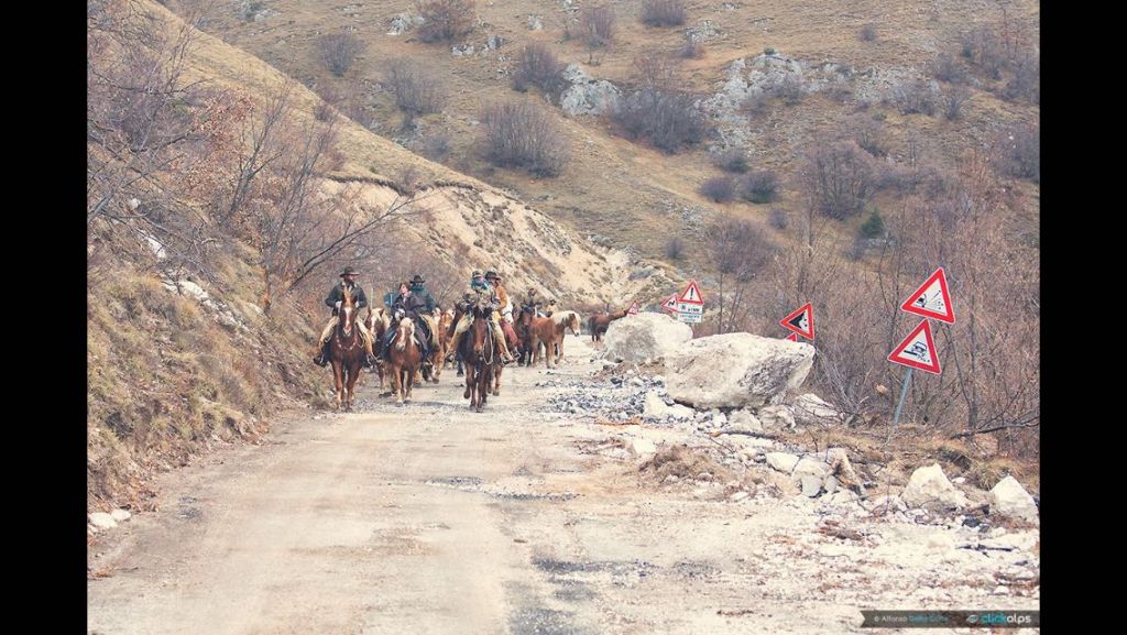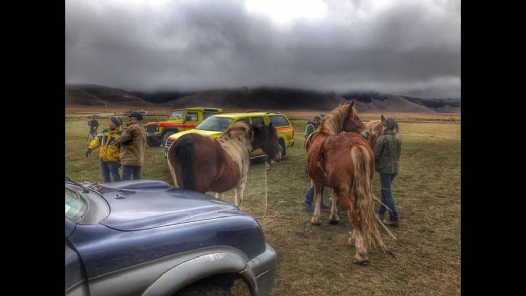 Tra i cavalieri, oltre ai proprietari, c’era l’attrice Natalia Estrada. Adesso Castelluccio, meta turistica devastata dal Terremoto, è davvero deserta: non c’è più nessuno, né uomini né animali. Una quarantina i capi sono stati fatti scendere a valle e ricoverati in capanne a Norcia.