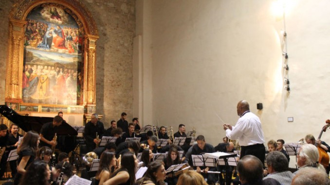 NORCIA – Nell’ambito dell’”International Music Project 2015-2016” l’Associazione Culturale “Complesso Bandistico Città di Norcia”, la Banda musicale Città di Bevagna, i Comuni di Norcia e Bevagna, il Conservatorio di musica “Morlacchi” di Perugia, la Carroll University, la Drexel University e la Mississipi State University hanno presentato tre grandi concerti finali: il primo l’11 luglio presso il Conservatorio Morlacchi di Perugia, il secondo a Norcia, domenica scorsa all’Auditorium di San Francesco, e l’ultimo ieri sera (13) presso il Palazzo Trinci di Foligno. Ad esibirsi, in tutte e tre le occasioni, è stato l’”International Wind Ensemble”, composto dagli studenti del Conservatorio “Morlacchi” di Perugia (Sezione fiati e percussioni), dagli studenti americani della “Carroll University” e dalla “Wind Symphony” di Bevagna e Norcia. Alla direzione dei concerti si sono alternati i Maestri Filippo Salemmi, Lawrence Dale Harper (della Carroll University – Wisconsin) e Wesley Broadnax (della Drexel University – Philadelphia). Il programma di sala ha entusiasmato e lasciato senza fiato tutti i presenti per la magistrale esecuzione dei brani scelti, di estrema difficoltà tecnico-esecutiva e di grande impatto emotivo. Ad aprire il programma è stata la “First Suite in Eb” di Gustav Holst, seguita dal “Concerto per clarinetto e orchestra di fiati” di Frank Ticheli. Le altre composizioni eseguite sono state l’”Eclipse” di Joel Matthys, la “Corsican Litany” di Vaclav Nelhybel, il “Concertino per pianoforte e orchestra di fiati” di Karel Husa, “Flourishes and Meditation on a renaissance theme” di Michael Gandolfi e, in conclusione, la “Danza n. 2” di Bruce Yurko.