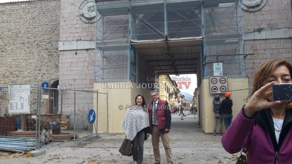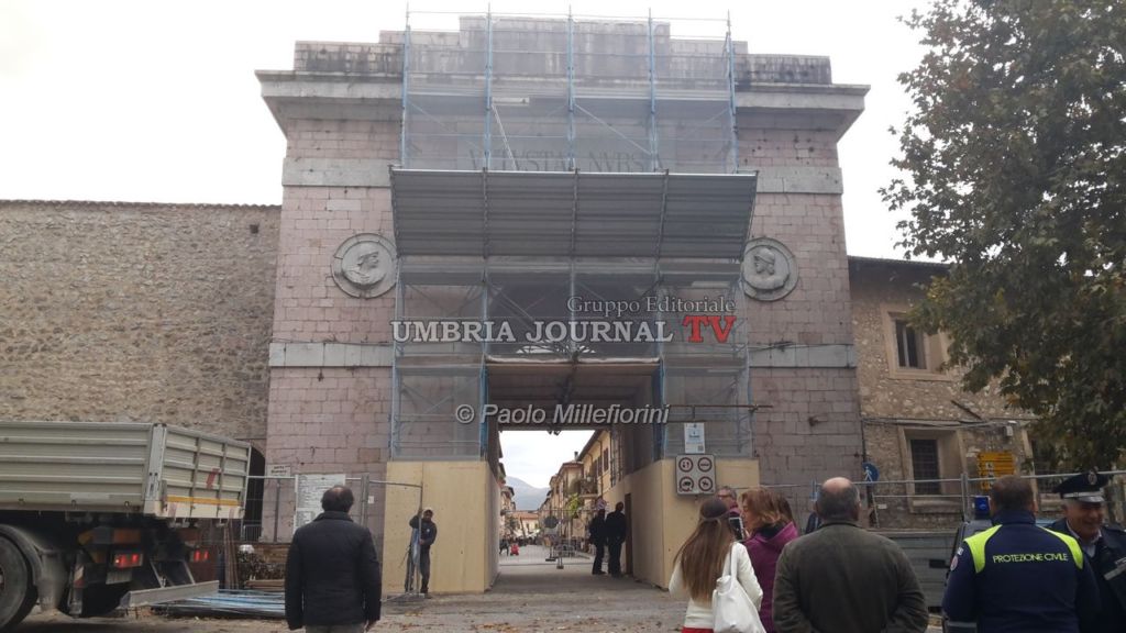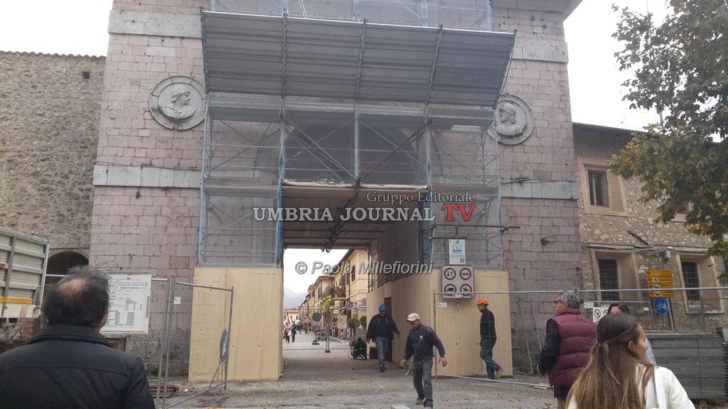 “Oggi è un giorno in cui diamo un forte segno di ripartenza – dice un emozionato Alemanno – Norcia con forza e determinazione sta ripartendo e lo stiamo dimostrando giorno per giorno”. Solo pochi giorni fa infatti erano state montate le impalcature che imbracavano la Porta e si paventavano ‘nubi all’orizzonte’ sul destino poco chiaro del maestoso ingresso nella Vetusta Nursia e soprattutto sulla tempistica di riapertura.