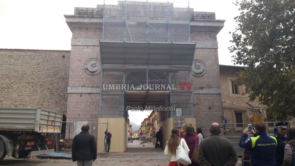 Norcia, riaperta Porta Romana, si rientra a casa dall’ingresso principale. Di Paolo Millefiorini – Si rientra a casa dall’ingresso principale. Improvviso nel pomeriggio nursino arriva un raggio di sole abbagliante. Alle 17 circa si sparge la voce che Porta Romana, la porta di accesso alla città sarà riaperta. A darne comunicazione è lo stesso sindaco di Norcia Nicola Alemanno, appena confermata la notizia da parte di tecnici ed operai al lavoro per la repentina apertura lasciando un tavolo di lavoro in cui era impegnato in Comune.