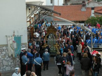 Nel salutare le molte persone, l’Arcivescovo ha detto: «Il giro della mura che abbiamo fatto è stato un grande abbraccio a Norcia, che vogliamo estendere a quanti hanno perso casa e a coloro che sono stati costretti a lasciare questa bella terra. Abbiamo chiesto alla Madonna Addolorata di farsi carico delle sofferenze dei suoi figli e lei ci ha donato la sua carezza: portatela a tutte le persone che incontrerete». Un lungo applauso si è levato spontaneo dopo queste parole del Presule e tutti poi si sono messi in fila per raccogliersi, anche solo per qualche secondo, in preghiera personale dinanzi all’immagine. Intorno alle 17.30 la Madonna Addolorata è ripartita per Spoleto, dove è custodita nel deposito del Ministero dei Beni Culturali di S. Chiodo.