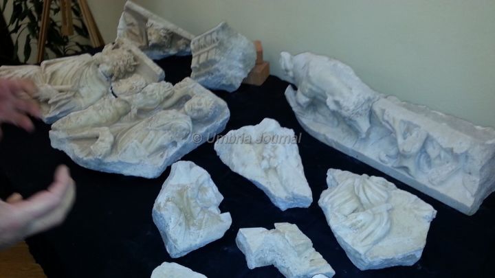 I Carabinieri del Nucleo Tutela Patrimonio Culturale di Firenze, a seguito di una segnalazione alla Sopraintendenza Archeologica dell’Umbria, a partire da dicembre del 2014, hanno avviato un’indagine che ha consentito di recuperare un undici frammenti di rilievi architettonici di epoca romana che erano stati cementati a scopo ornamentale nelle pareti interne ed esterne di un’abitazione del comune di Norcia. Una prima analisi dei reperti, eseguita dai Funzionari della Sopraintendenza di Perugia, consentiva sin da subito di ritenerli di particolare interesse storico e artistico essendo provenienti da strutture archeologiche di tipo monumentale del II – III Sec d.C, tanto da avviare le procedure di dichiarazione d’interesse culturale delle stesse.