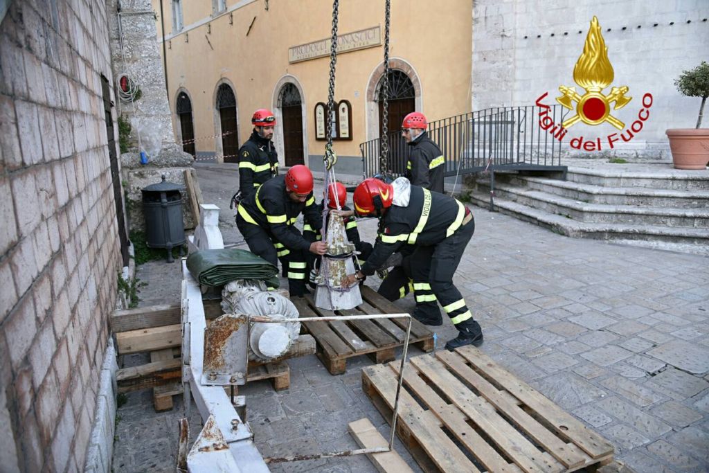 Un intervento delicato e urgente che è stato eseguito in accordo con il personale del Ministero dei Beni Culturali. Un intervento non invasivo al quale ha assistito molta gente ed è stato ripreso da numerose telecamere. Il Priore della Basilica Benedettina, padre Cassian al termine delle operazioni ha ringraziato i vigili del fuoco presenti con una particolare benedizione per tutti i vigili del fuoco.