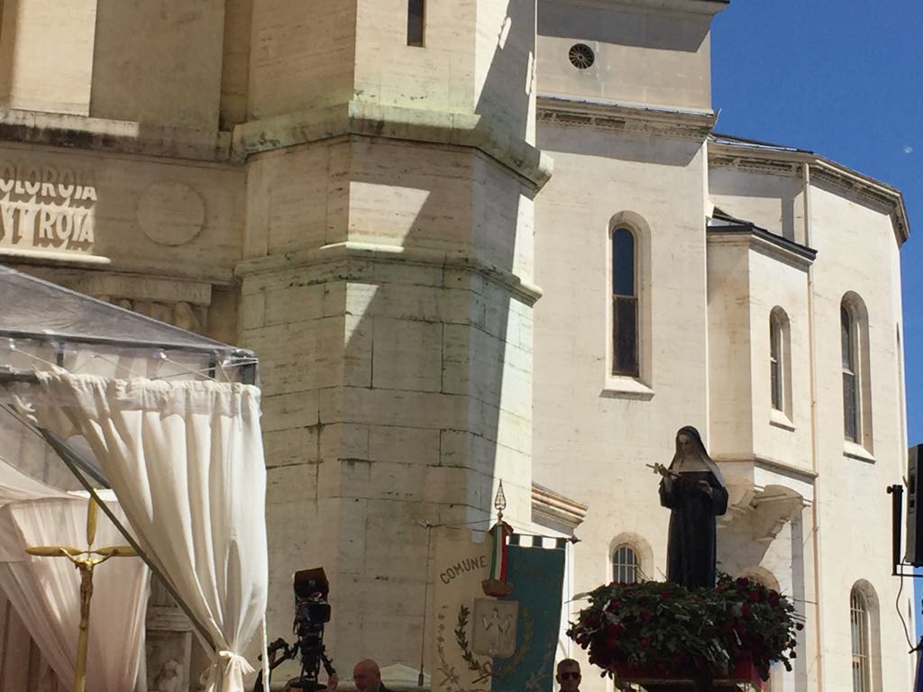 Alla celebrazione della Santa messa sul sagrato della “casa” di Rita anche il vescovo della diocesi Spoleto Norcia, monsignor Renato Boccardo e il rettore della Basilica, padre Bernardino Pinciaroli.