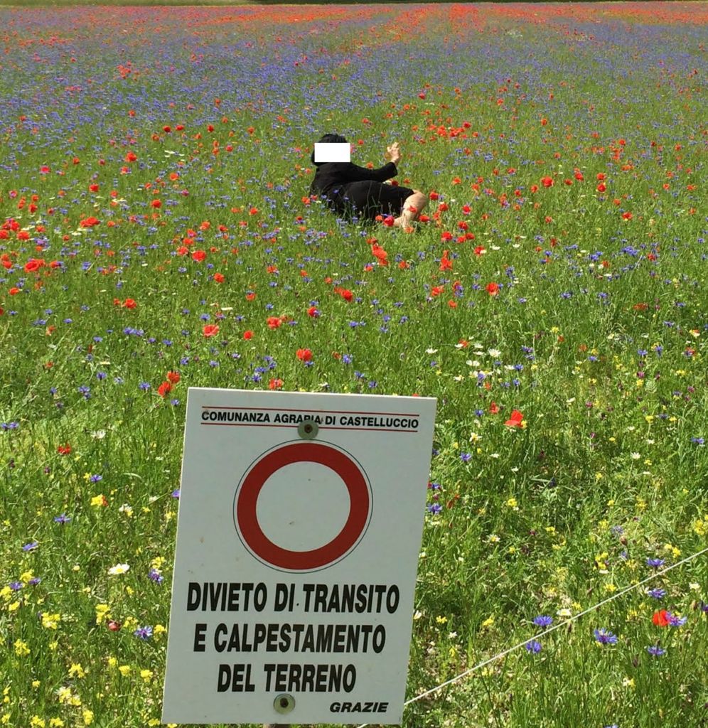 Così pur di farsi un selfie si sono divelti cartelli, corde di confine per invadere i campi in fiore. C’era chi si rotolava, strisciava, si sdraiava col cellulare in mano fotografandosi in tutte le posizioni immaginabili calpestando, strappando e distruggendo.