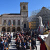 Norcia, celebrata la festa del Patrono San Benedetto NORCIA – Martedì 21 marzo Norcia ha celebrato la festa del suo patrono S. Benedetto. E per la prima volta dal terremoto del 30 ottobre scorso che ha distrutto gran parte dei centri abitati della Valnerina i fedeli hanno potuto nuovamente partecipare alla Messa all’interno delle mura cittadine. Non in una chiesa – gran parte, infatti, sono crollate e le altre seriamente lesionate – ma nella centralissima piazza della città umbra dove c’è la statua in marmo di S. Benedetto, “miracolosamente” integra, dinanzi alla facciata ingabbiata di quella che era la basilica edificata sul luogo di nascita del santo patrono d’Europa e della sua gemella Scolastica. La sera prima, lunedì 20 marzo, è giunta la “Fiaccola benedettina pro pace et Europa una” benedetta da papa Francesco il 22 febbraio, accesa proprio a Norcia, in mezzo alle macerie della Basilica, il 25 febbraio e poi portata nella sede del Parlamento Europeo di Bruxelles (8-11 marzo).