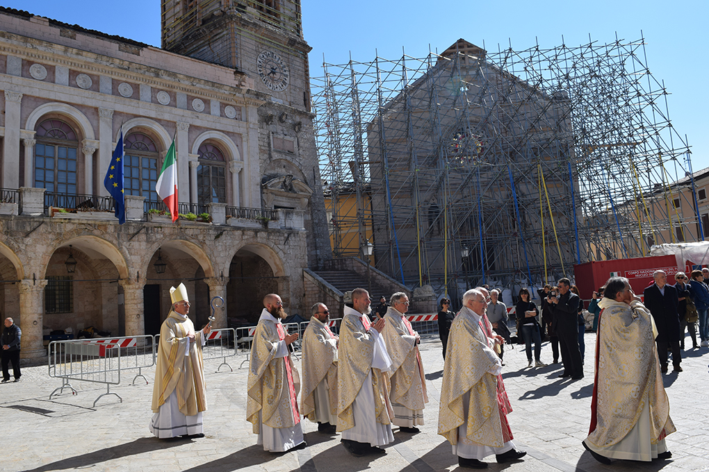 Non poteva poi mancare un riferimento di mons. Boccardo al terremoto: «Il Santo Patriarca – ha detto – è stato un grande ricostruttore. Anche noi dobbiamo ricostruire: le ferite del recente terremoto sono ancora sanguinanti e ci vorrà tempo perché si mutino in cicatrici. In questo percorso, non sempre facile e spedito, l’amicizia e la solidarietà di tanti, però, costituiscono per noi come l’olio della consolazione e il vino della speranza. Ben poca cosa sarebbe – ha proseguito il Presule – la ricostruzione della basilica di S. Benedetto se, nello stesso tempo, non si provvedesse alla ricostruzione interiore dell’uomo e della società.