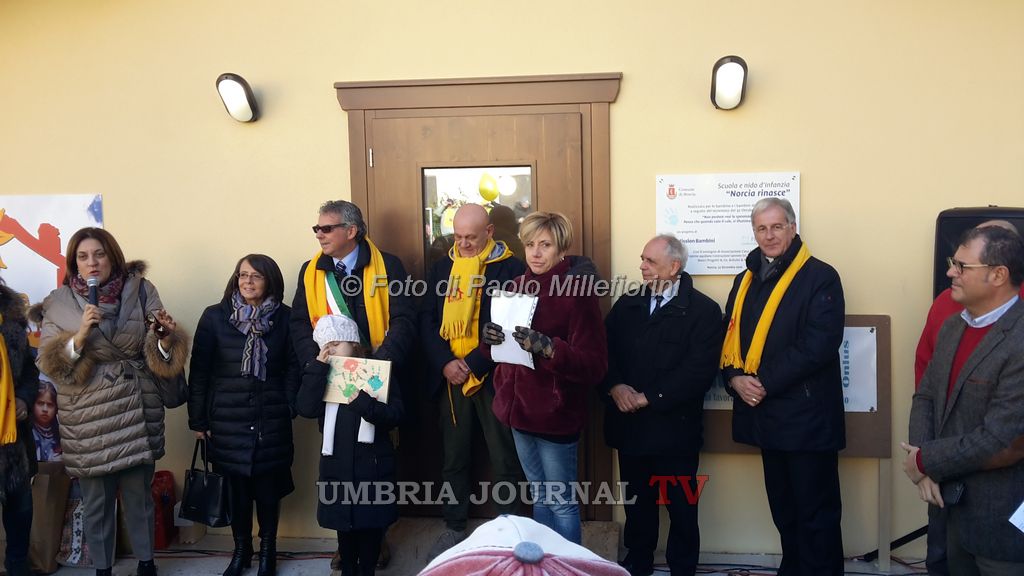 Circa 50 saranno i fruitori della struttura, oggi già quasi tutti presenti all’inaugurazione dove a salutarli oltre che alle istituzioni, c’era Babbo Natale con doni per tutti. E’ il primo edificio pubblico di Norcia ricostruito dopo il terremoto del 30 ottobre; la scuola si chiamerà ‘Norcia Rinasce’, perché da “qui e dai bambini una comunità deve ricominciare a vivere” ha detto il sindaco di Norcia, Nicola Alemanno .“In meno di un mese abbiamo visto la realizzazione dei lavori e questo è un altro segno di speranza per il futuro: tornare a sentire le voci dei bambini squillare all’interno di questa scuola – continua Alemanno – sarà per la nostra comunità il primo vero grande segnale di ritorno alla normalità. È una grande emozione essere qui oggi e a tutte le persone che hanno reso possibile questa realizzazione va il nostro ringraziamento, dal più profondo del cuore”.
