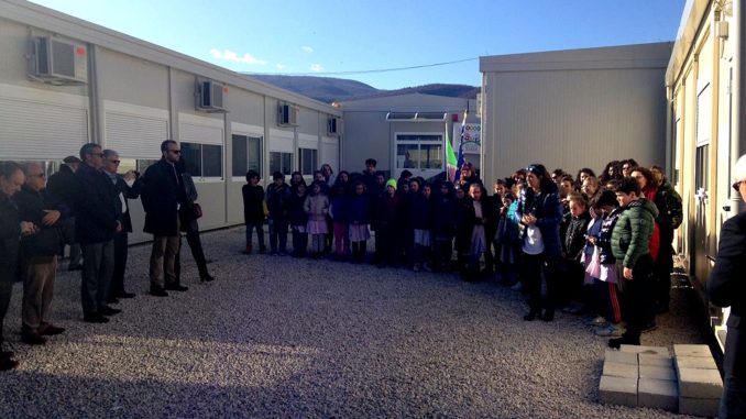 Al service, quindi, hanno preso parte 15 club umbri, tra i quali quello di Gualdo Tadino che è intervenuto all’inaugurazione del modulo-ufficio lo scorso 10 marzo nelle persone del presidente Christian Severini e dei past president Aurelio Pucci e Alfiero Albrigi. Erano altresì presenti la dirigente scolastica dell’istituto Rosella Tonti e gli alunni della scuola che hanno ringraziato tutti i rappresentanti dei Rotary club intervenuti con una poesia ed un coppo da loro disegnato che rappresenta la città di Norcia.