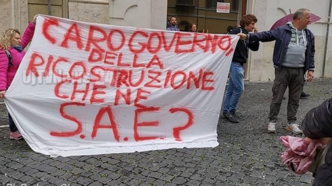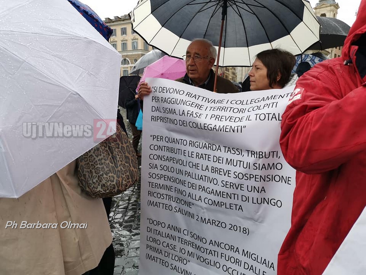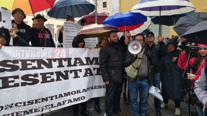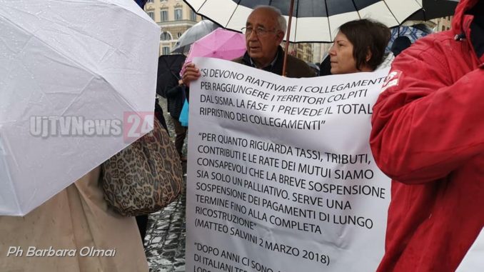Hanno sfidato pioggia, vento e intemperie le centinaia di persone che questa mattina hanno preso parte alla nuova manifestazione organizzata dal Coordinamento nazionale dei Comitati civici nati dopo il terremoto del 2016 nel Centro Italia, una marcia di protesta diretta verso i palazzi istituzionali, per denunciare una ricostruzione ferma al palo, più o meno ad ogni latitudine delle quattro regioni devastate dai fenomeni sismici di quasi tre anni fa.