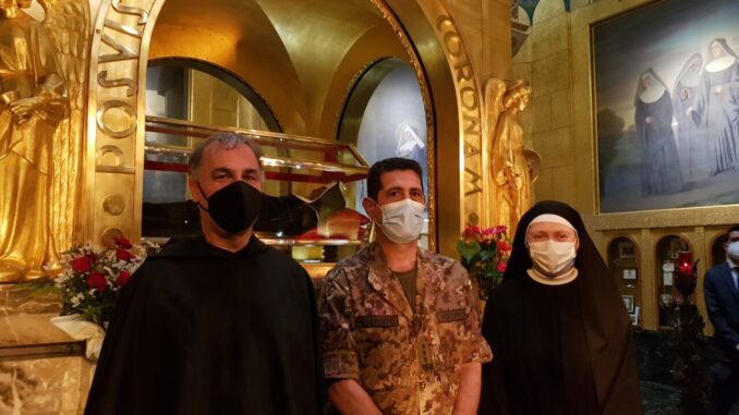 All’interno dell’urna, che custodisce il corpo della santa degli impossibili, il militare ha incontrato Suor Maria Rosa Bernardinis, Priora del Monastero Santa Rita da Cascia, che ha assicurato le preghiere di tutta la comunità a sostegno della ripresa e del futuro del Paese.