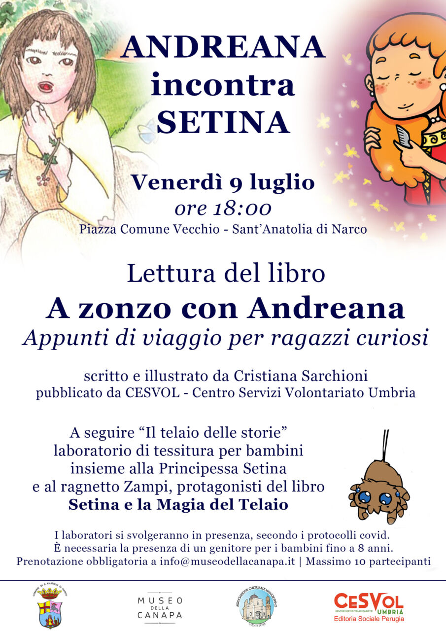 E così, dopo aver conosciuto la storia di Andreana, Setina porterà bambini e ragazzi a conoscere il mondo magico dei telai e dei tessuti fatti a mano, in attesa di andare a trovare la sua amica Andreana e raccontare la sua storia ai ragazzi di Panicale e di Mongiovino.