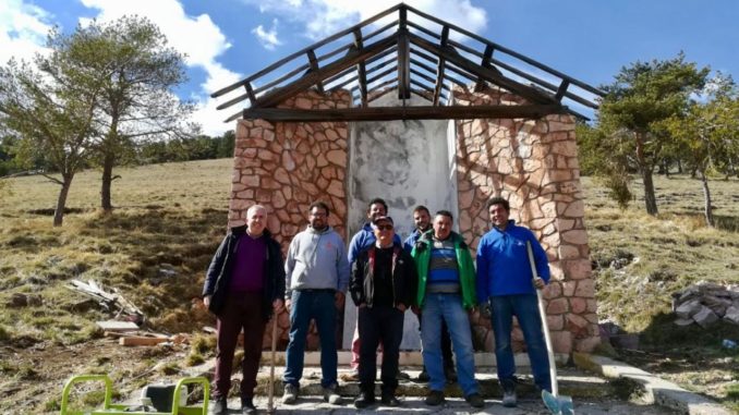 Chiesa della Pineta Italia Castelluccio, posa della prima pietra per restauro