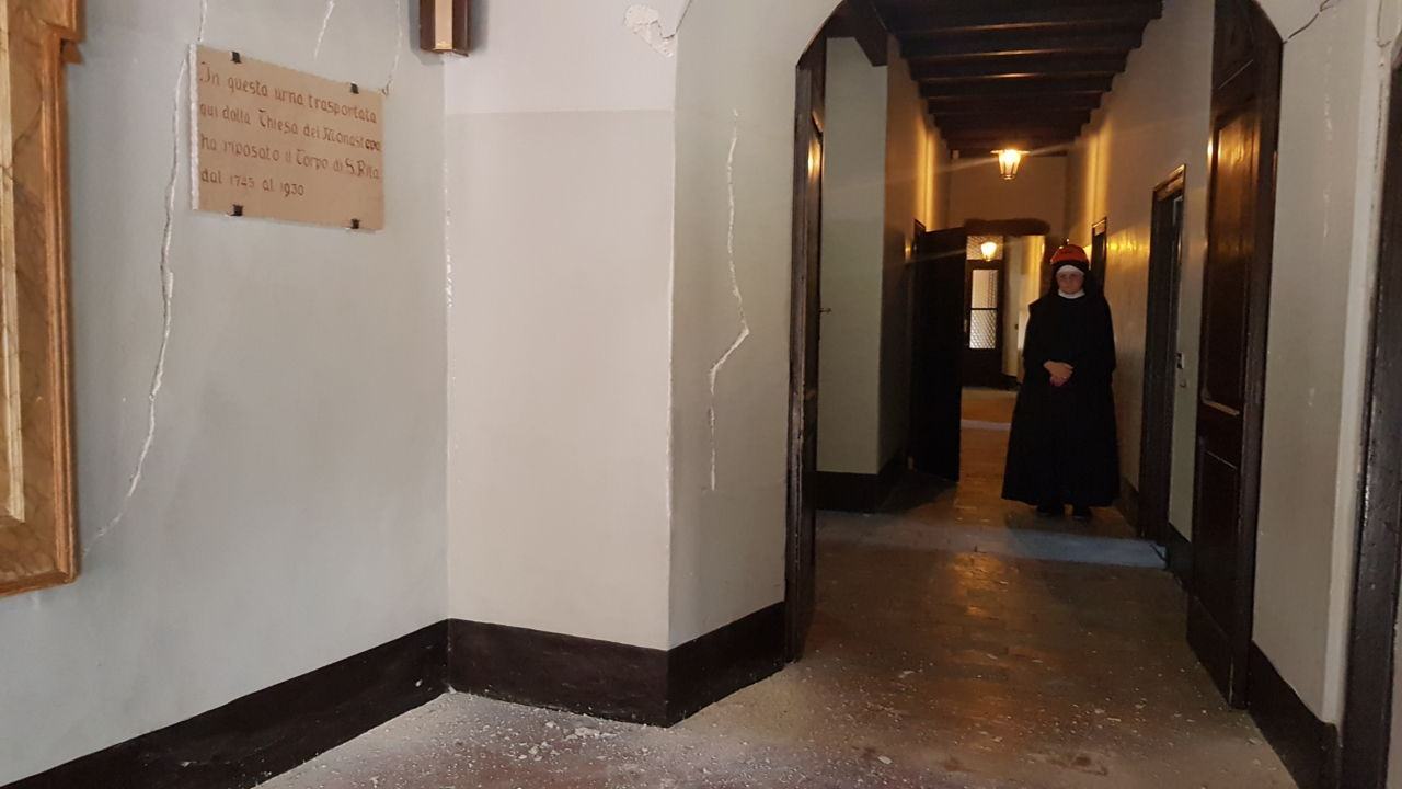 I LAVORI AL MONASTERO ANTICO – Nella parte antica del Monastero, oggi inagibile, la Santa ha passato 40 anni. Qui, si trovano l’Oratorio del Crocifisso, dove Rita ricevette la spina, la Cella dove la Santa ha vissuto e dov’era esposta la Cassa Solenne che ha custodito il suo corpo dopo la morte e il Roseto. Prima del sisma, questi luoghi erano visitati da una miriade di devoti, che ora debbono rinunciarvi. La visita al Monastero è garantita, avendo spostato ciò che si poteva, come la Cassa Solenne, in una stanza del Chiostro. Ma, non è più come prima.