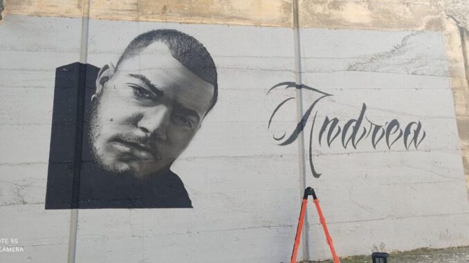 Il dipinto è stato realizzato a Piedipaterno in via Nursina a due passi dalla piazza principale, nel paese dove Andrea abitava con la sua famiglia. Il dipinto, realizzato con la tecnica spray, è il ritratto del giovane studente che Daniele Pulcinelli ha riprodotto abilmente in maniera quasi fotografica. Accanto al volto di Andrea, compare la scritta con il suo nome.