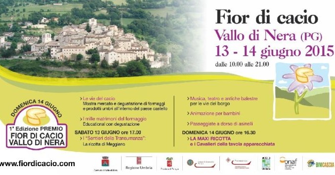 Conto alla rovescia per l’inaugurazione di “Fior di Cacio 2015”, l’originale e “gustosa” manifestazione giunta alla XIII edizione, in programma il prossimo fine settimana (13-14 giugno) a Vallo di Nera. Domani, 12 giugno, anteprima alle 18 con Slow Food che, dopo il dibattito su “Buono, pulito e giusto, parliamo di formaggio”, prevede la visita guidata alle chiese romaniche di Vallo. Numerosi e accattivanti gli appuntamenti di un programma che fa del formaggio, nelle sue infinite varianti, un altro nobile alimento del ricco paniere agroalimentare della Valnerina.